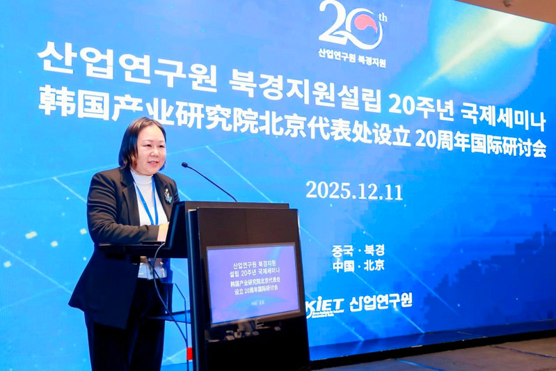 2025 年 12 月 11 日下午,韩国产业研究院北京代表处成立 20 周年国际研讨会在北京举办。此次研讨会以 “产业大转换期,探索韩中产业合作新阶段” 为主题,汇聚中韩两国政府官员、智库专家、企业代表等 50 余人,围绕产业协同发展、供应链合作等议题展开深度交流。上海社会科学院应用经济研究所副所长汤蕴懿受邀参会并发表致辞。